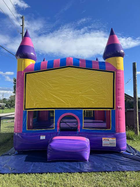 Make your next event a hit with our colorful Cotton Candy Bounce House 🍭! Measuring 13x13 feet, this vibrant bounce house is perfect for kids of all ages 🎉. With its eye-catching cotton candy colors and fun basketball hoop inside, the Cotton Candy Bounce House is sure to be a crowd favorite at your next party or event.